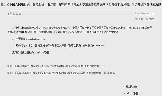 中国人民银行官网5日公布,为推进大额现金管理工作,探索大额现金管理实现路径,总结大额现金管理经验,人民银行起草了《关于在河北省、浙江省、深圳市试点开展大额现金管理的通知(公开征求意见稿)》(下称《通知》)。 《通知》对河北省、浙江省、深圳市人民银行分支机构,相关银行业金融机构提出了开展大额现金管理试点工作的原则要求,明确了试点任务、保障措施和实施计划。 试点为期2年,分地区分阶段实施。 第一步,在河北省全面规范商业银行大额现金业务,探索邢台市房地产行业、秦皇岛市医疗行业企业记录并报告大额现金交易。 第二步,待河北省试点稳定开展后,在浙江省、深圳市推广全面规范商业银行大额现金业务试点内容,并在浙江省探索批发零售、房地产销售、建筑、汽车销售行业企业大额取现及用现额度管理,在深圳市探索强化对私账户大额用现管理、加强大额现金出入境及香港地区人民币现金业务情况监测,选择适宜地市探索推动个人收入报告措施。 之所以选择这三地先行试点,《通知》解释,基于各地现金流通使用实际及管理基础,人民银行选择在河北省、浙江省、深圳市进行试点。其中,河北省银行业金融机构大额现金业务管理基础较好,浙江省、深圳市均为全国现金投放重点区域,浙江省一些行业大额用现情况突出,个人账户大额用现情况突出,深港之间人民币现钞跨境流动普遍。 |
